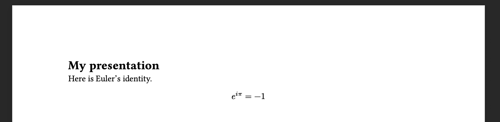 It will serve on http://localhost:3000 and automatically reload itself, something you can’t do in a typical pdf viewer. However it (as of October 2025) doesn’t support math equations, with warnings such as: