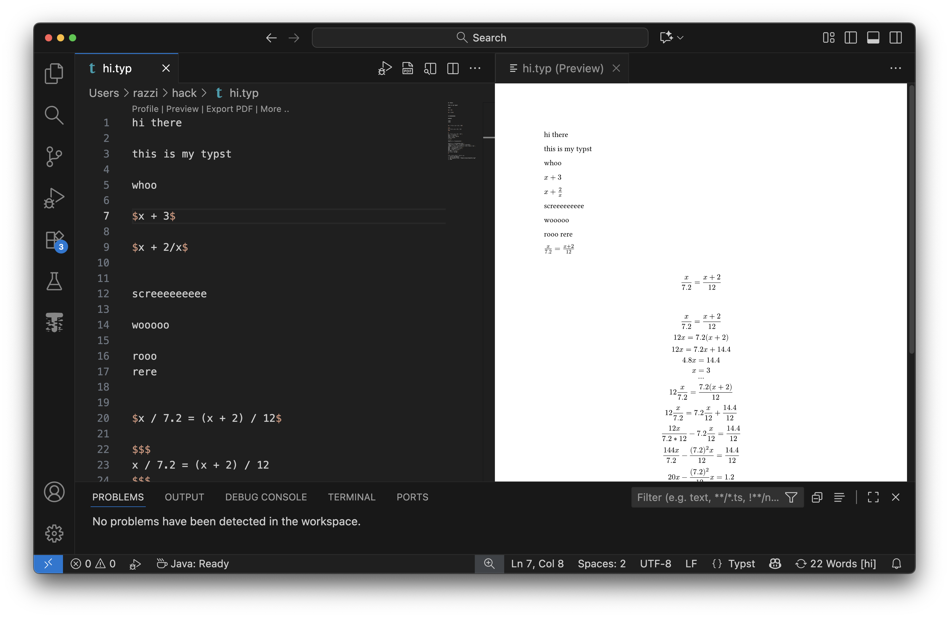 It will serve on http://localhost:3000 and automatically reload itself, something you can’t do in a typical pdf viewer. However it (as of October 2025) doesn’t support math equations, with warnings such as: